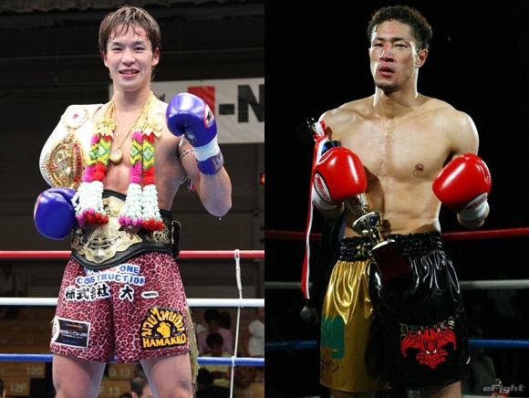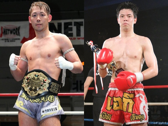 ▲J-NETWORKライト級タイトルマッチで対戦する王者・高橋幸光(左)と挑戦者・前口太尊(右)