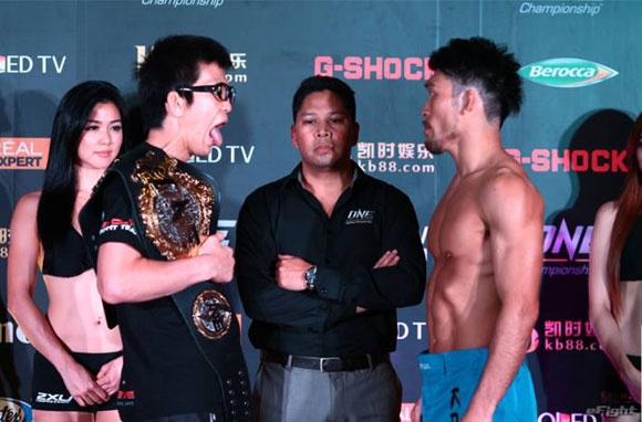 ▲今年5月、青木(左)が保持するONE世界ライト級王座に挑戦した安藤(右)