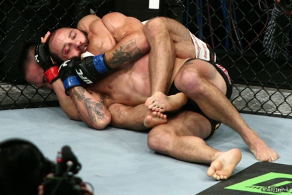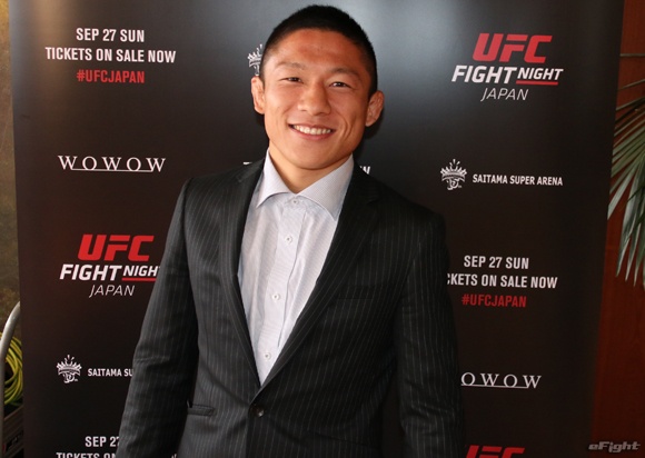 ▲昨年9月のUFC日本大会ではスリーパーで一本勝ちした菊野克紀(奥)
