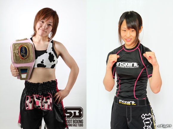 ▲好調の朱里(左)はJ-GIRLSのベテラン美保(右)を迎え撃つ
