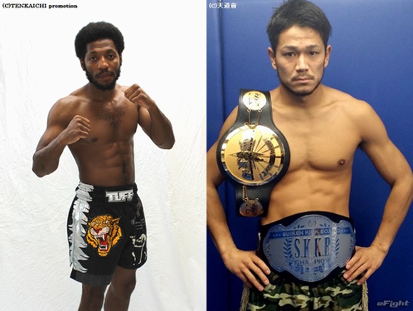 ▲TENKAICHI KICKのミドル級で対戦するルールでマーカス・スミス(左)と杉田裕希(右)
