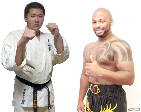 数々の空手大会で入賞歴を誇る遊笑(左)とアメリカ人キックボクサーのピポーズ(右)によるヘビー級対決