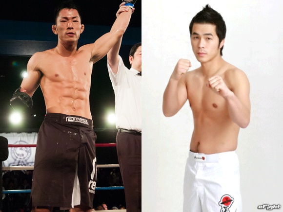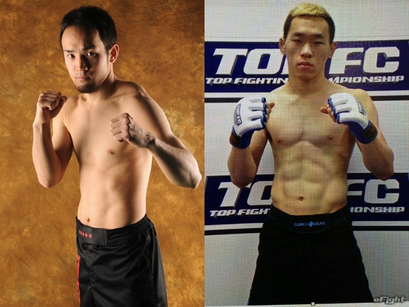 内藤大尊(左)と対戦するユン・ミンウク(右)