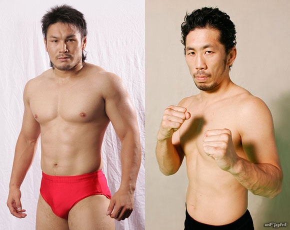 静岡大会ではミノワマン(左)vs伊藤崇文(右)の元パンクラス同門対決がエキシビションマッチとして行われる