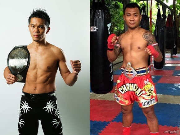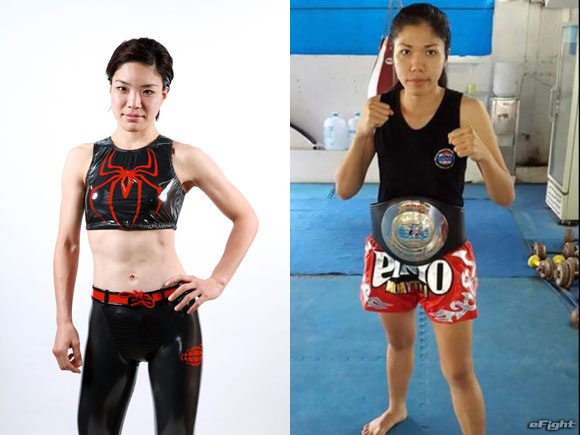 高橋(左)もムエタイのペッチョンプー(右)と対戦