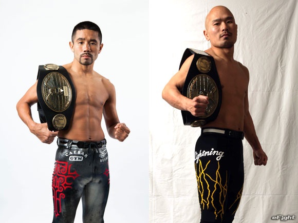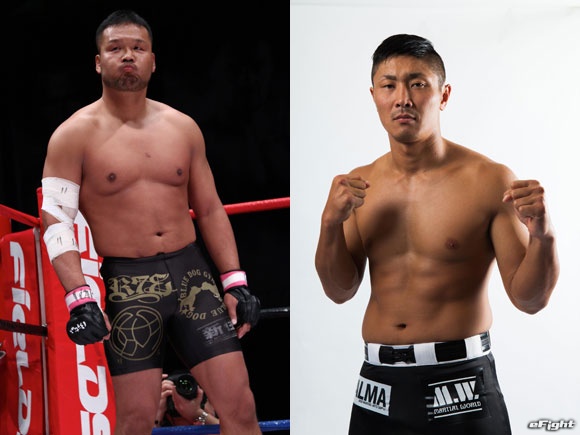 スーパーヘビー級の川口(左)を迎え撃つ南国超人(右)(写真:SB)