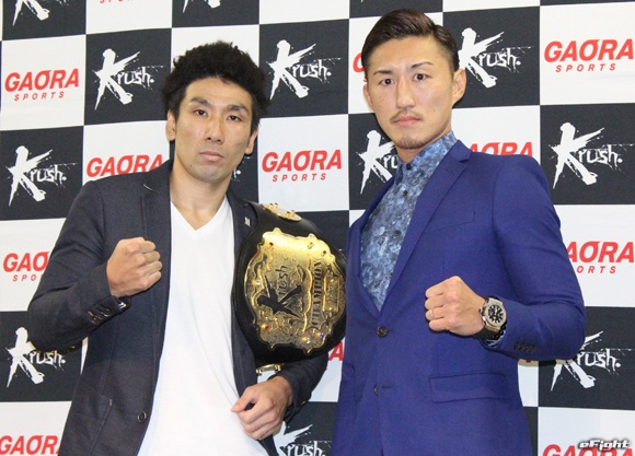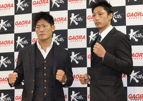 67kg挑戦者決定戦で対戦する渡部太基(左)と塚越仁志(右)