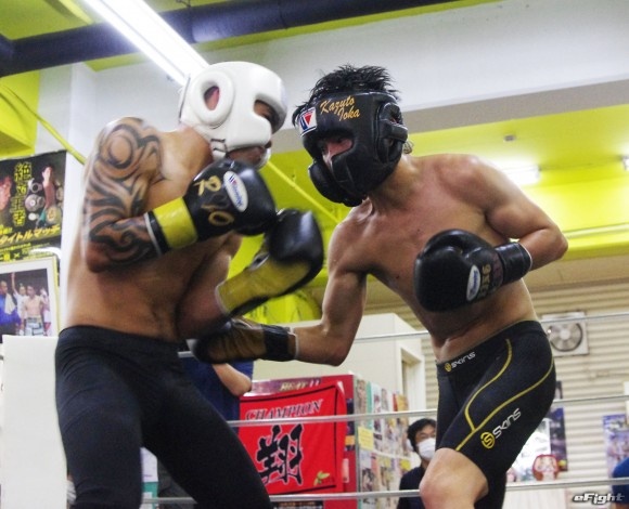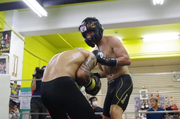 父である井岡一法会長(右)とボディへのカウンターパンチを練習してきた井岡一翔(左)