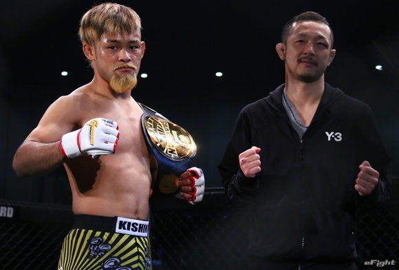 GRACHAN MMAバンタム級タイトルマッチで対戦する王者・手塚基伸(左)と挑戦者・斉藤洋二(右)