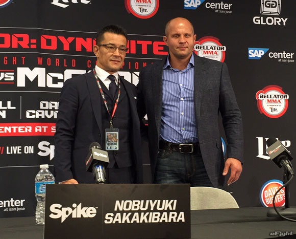 榊原代表(左)とヒョードル(右)が出席する会見がインターネットで生中継される