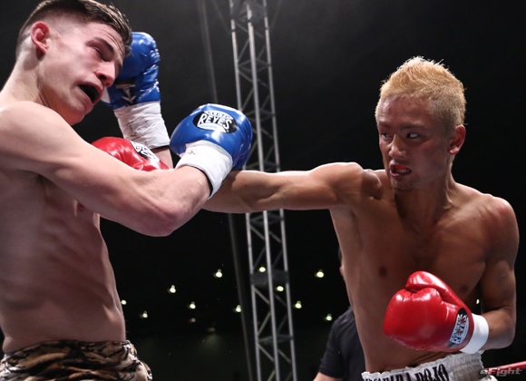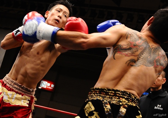 今年1月のK-1では、第3代IT’S SHOWTIME-61kg世界王者ハビエル・エルナンデス(左)と激闘を繰り広げた島野(右)