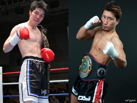 トリッキースタイルのJ-NET王者・八神(左)が、ムエタイ+空手スタイルの一戸(右)を迎え撃つ