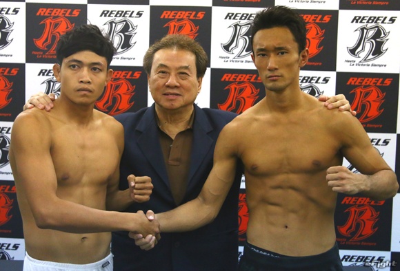 メインイベントで対戦する梅野源治(右)とソーンコム・シットナーヨックサンヤー(左)