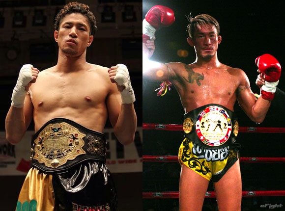 J-NET王者でパンチを得意とする前口(左)と、ムエタイオープン王者でヒジ&ヒザを得意とする翔(右)が激突