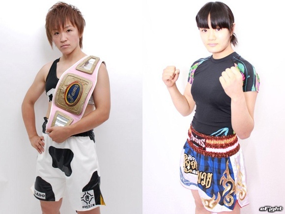 J-GIRLSミニフライ級タイトルマッチで対戦する王者・紅絹(左)と挑戦者の“最強女子高生”山口友花里(右)