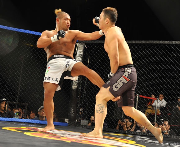 ヘビー級王座決定戦から無差別級王座決定戦に臨むことが決まった井上(左)
