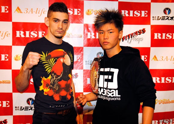 欧州の強豪アラモス(左)を迎え撃つ那須川(右)。今回もKOなるか