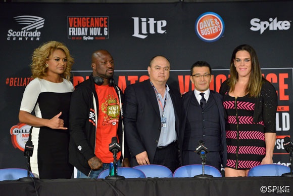 記者会見に出席した両選手。その大きさが分かる。(C)SPIKE