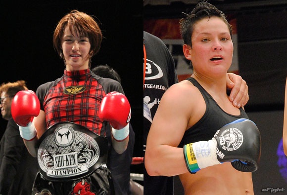 国内二冠王の松田(左)がSBで猛威を奮ったロレーナ(右)と世界タイトルを争う