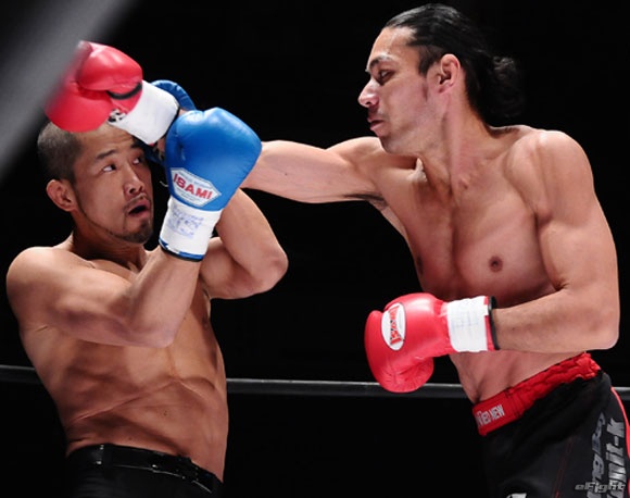 2012年11月、当時のSB日本スーパーウェルター級王者・鈴木悟(右)と対戦した郷野は1RでTKO負け。あの時の屈辱を晴らせるか