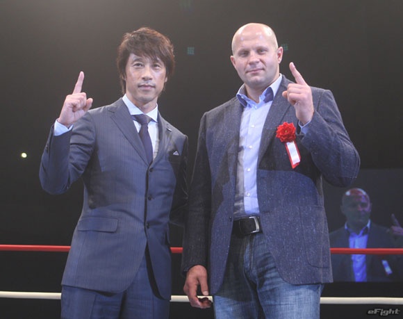 前田憲作K-1プロデューサー(左)とヒョードル(右)