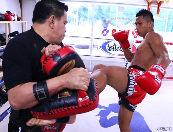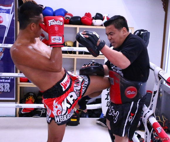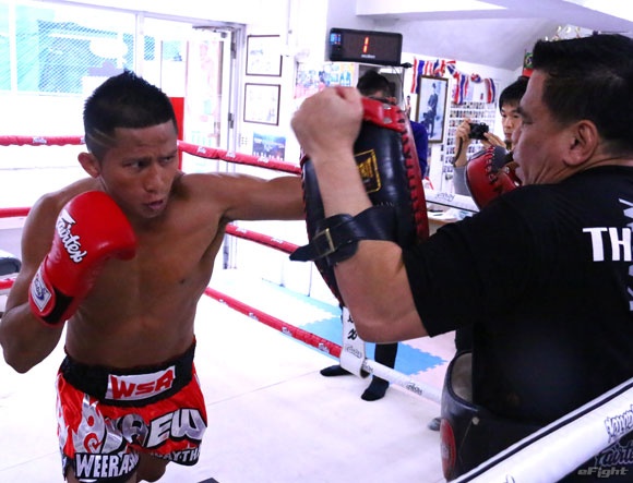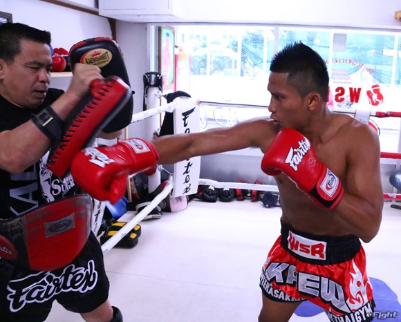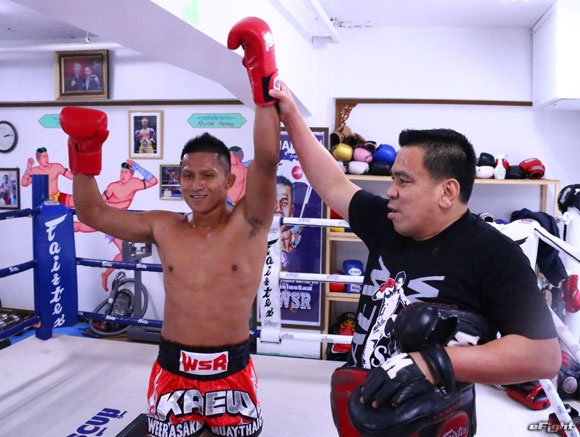 今回から所属ジムが変わり、フェアテックスジムからウィラサクレック会長(右)率いるウィラサクレックジムへ。それに伴い名前もゲーオ・ウィラサクレックとなる