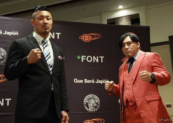 SBヘビー級のエース候補・南国超人(左)はプロレスラーの佐藤(右)を迎え撃つ
