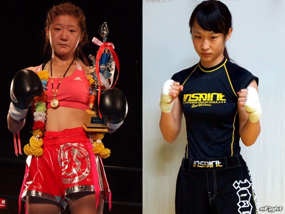 WPMF日本女子ピン級王座決定戦で対戦するCOMACHI(左)とMARI(右)