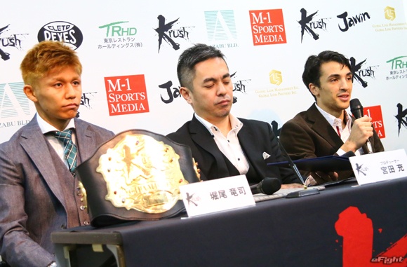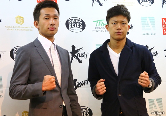 Krush -58kg王座決定戦・出場者決定戦で対戦する神戸翔太(左)と大滝裕太(右)