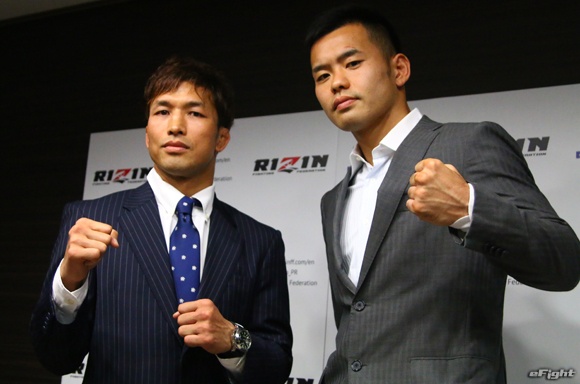 MIXルールで対戦する宮田和幸(左)と日菜太(右)