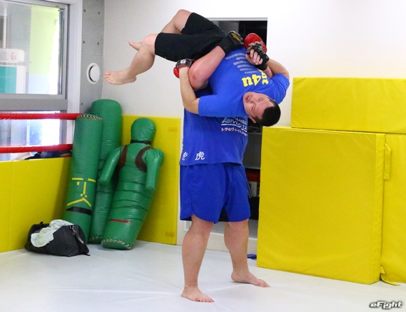 小路を軽々と肩の高さまで持ち上げ、マットに叩きつけるバルト・クレーン