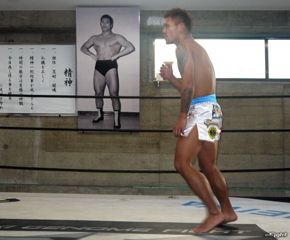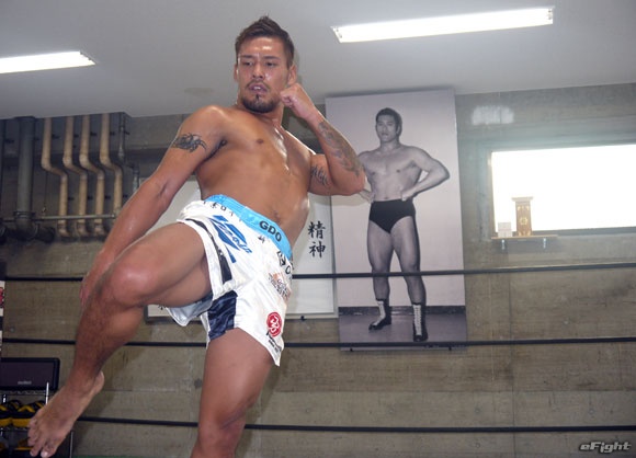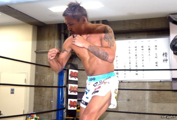 公開練習では得意のヒザ蹴りを交えたシャドーを披露