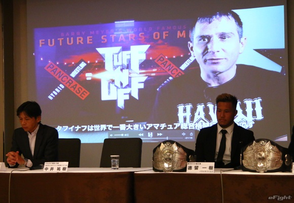パンクラスとタフイナフの提携を発表したパンクラス・酒井代表(左)