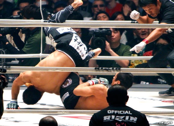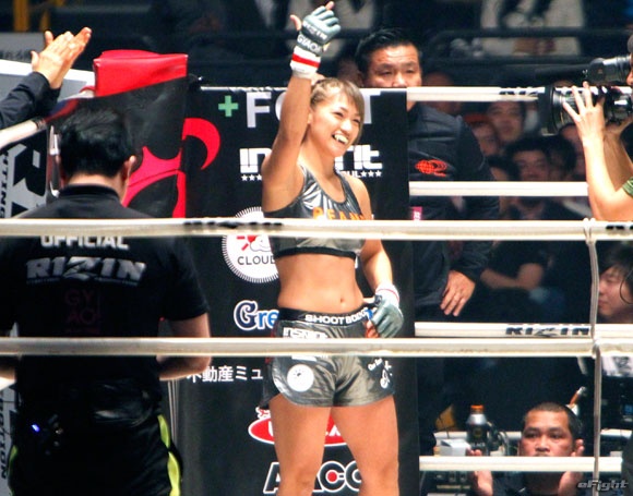 デビュー戦で予告通りの飛び付き腕十字を極めて見せたRENA