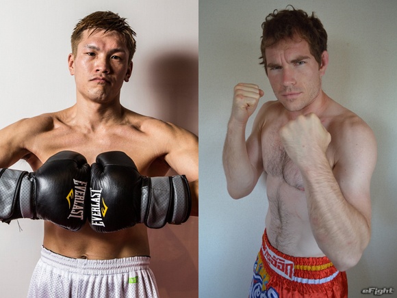 J-NETWORKライトヘビー級次期王者挑戦者決定戦で対戦する藤田智也(左)と武来安(右)