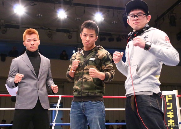 1・11後楽園ホール大会で挨拶した(左から)藤田、征矢、北原