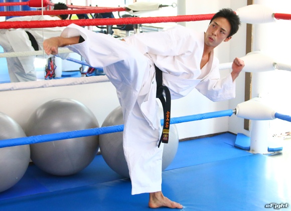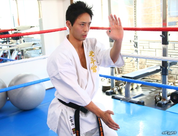公開練習では空手のオリジナルの型を披露した小宮山。「相手を想定してやっているもの」だという。