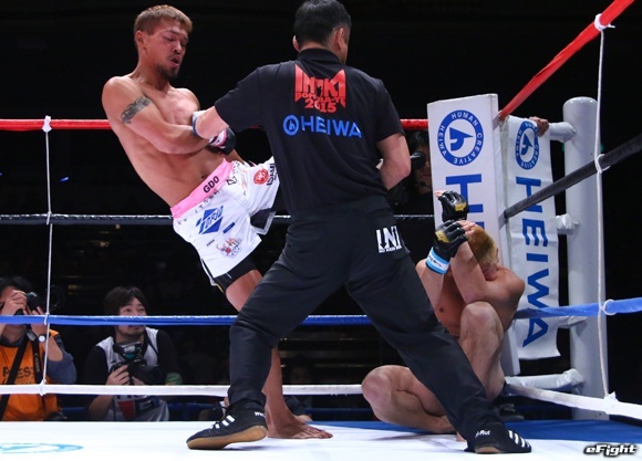 大みそかの猪木ボンバイエで山本勇気(左)に26秒でKO負けを喫した奥田(右)が出直しの一戦