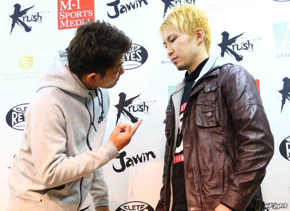 なんと中指を立てて俊(右)を挑発した皇治(左)。この試合、ただでは済みそうもない