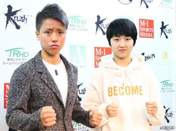 3連続KOを狙うKANA(左)と、テコンドーの足技が得意だという無敗のヘジン(右)