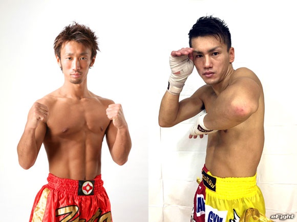 初のムエタイルールでKO勝ちした渡辺(左)が2戦目で王座挑戦者決定戦に臨む。対するNOBU(右)はヒジの使い手