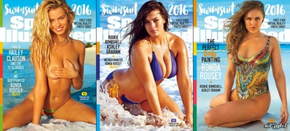 水着特集で表紙を飾った3人。右からラウジー、グラハム、クラウソン