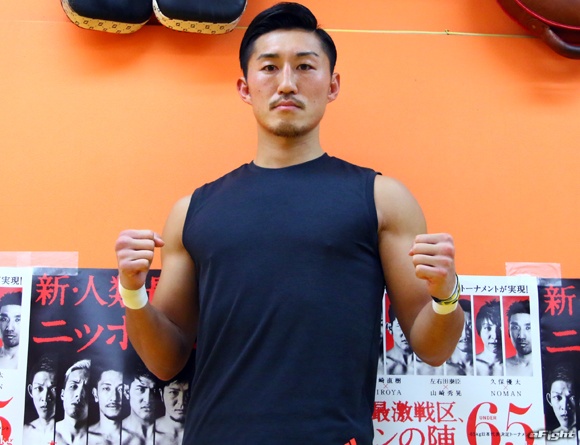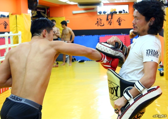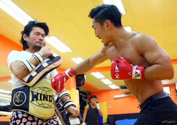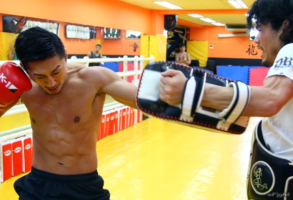 破壊力のあるパンチのミット打ちを披露した山崎(左)