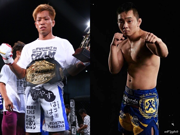 GRACHANフライ級王者・鈴木隼人(左)は韓国のキム・ソクヨン(右)とメインで激突