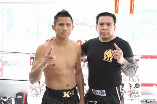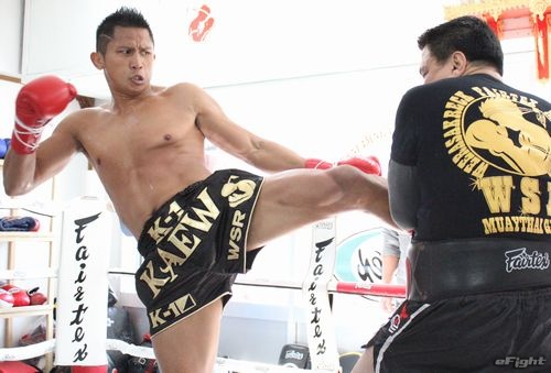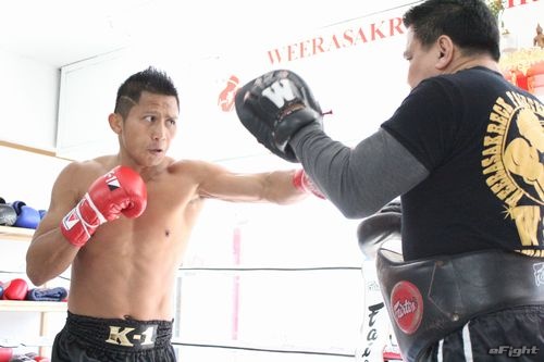 日本の寒さにも負けず、重い左ミドルをミットに叩き込むゲーオ