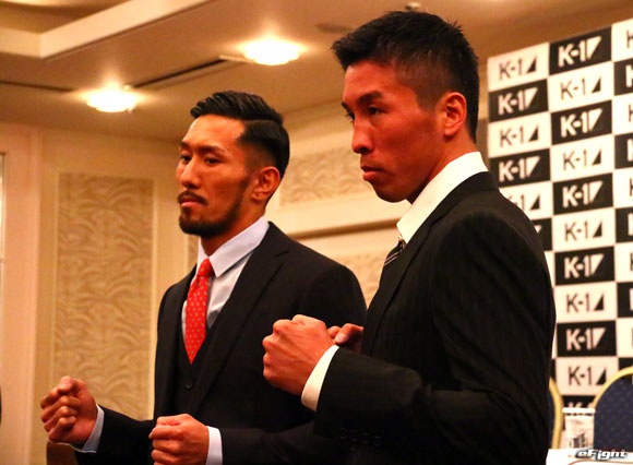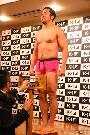 上原(左)vsNORI(右)のヘビー級対決。両者とも2R以内でのKO決着を宣言した