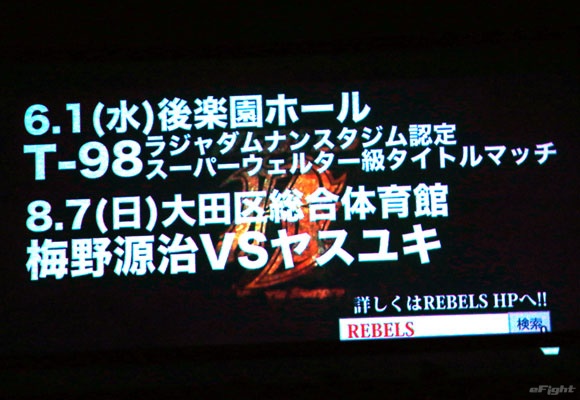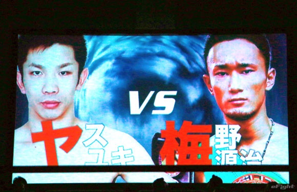 梅野vsヤスユキの日本人頂上対決がついに実現。VTRで発表されると場内からは大きなどよめきが起こった