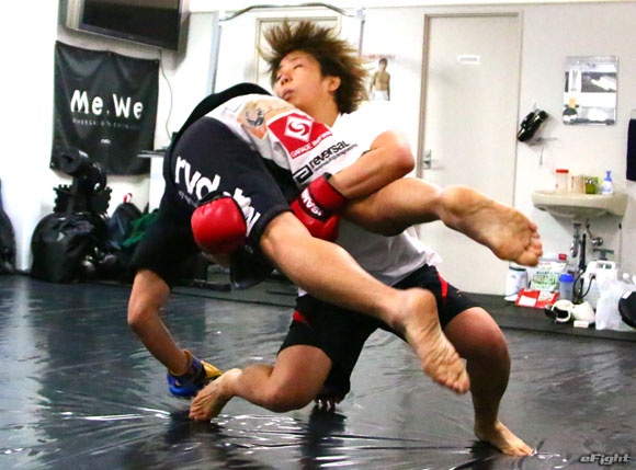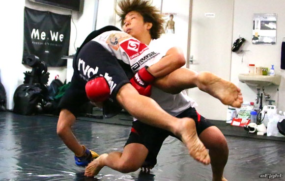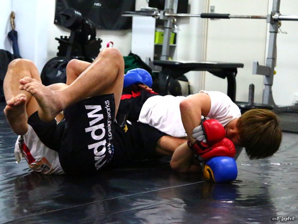 バックを奪って背後からパンチを見舞う