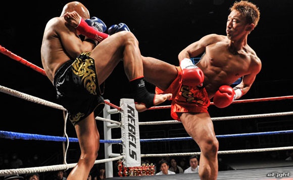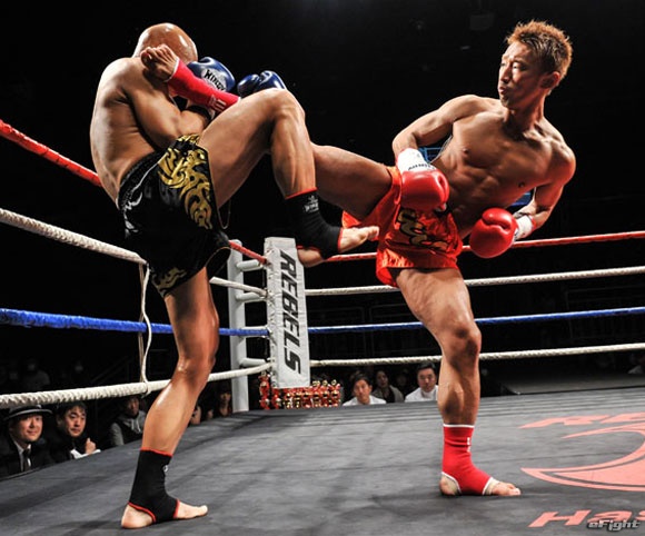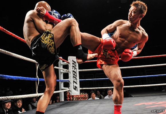 空手の足技を駆使する渡辺(右)。それにムエタイのエッセンスを加えたいという