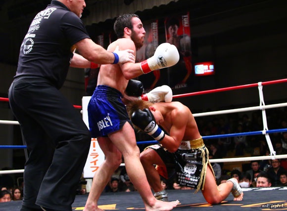 お互いにパンチを打ちに行ったところで、コルデイロの頭が那須川の右目をカウンターで直撃した。そこからは相手が二重に見えていたという